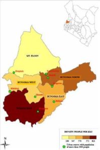 The County environment supports a complex pattern and balance of relationships between plants, animals, people and manmade features. These complex interactions lead to different selective pressures on organisms, leading to natural selection which causes population of species to evolve. Variation in nutrients and accumulation of toxins due to human activities have affected the ability of the environment to support life systems. Mt. Elgon forest ecosystem supports diverse life systems contributing immense goods (fruits, tubers, medicinal herbs, game meat, timber, logs, poles, firewood, fodder etc) and services (shed, pollination, decomposition, evaporation, absorption of CO2, nutrient formation, recreation, spiritual and cultural values etc).
